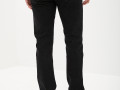Джинсы прямого кроя из плотного черного денима (13,2 oz) с фирменной нашивкой "Mossmore" на монетном кармане. Пятикарманная модель на рост 176-182 см с металлическими заклепками спереди и декорированными карманами сзади. На талии есть шлёвки для ремня и темный патч из искусственной кожи. Застёжка на молнию и болт-пуговицу. Размер на модели 33, рост 189 см.