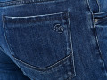 Джинсы зауженного кроя из плотного денима (13,2 oz) с потертостями и добавлением эластана. Модель на рост 178-184 см с пятью карманами ручной обработки потертостей краев и низа брючин. Джинсы с декорированными карманами сзади и металлическими заклепками спереди. На талии есть шлёвки для ремня и патч из экокожи. Застёжка на молнию и болт-пуговицу. Размер на модели 33, рост 189 см.
