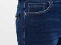 Джинсы зауженного кроя из плотного эластичного денима (13.2 oz) с фирменным шевроном из экокожи на кармане сзади. Пятикарманная модель с декоративными рельефами на карманах сзади на рост 176-182 см. На талии есть шлёвки для ремня и патч из экокожи. Застёжка на молнию и болт-пуговицу. Размер на модели 32, рост 187 см.