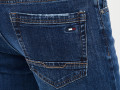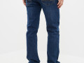 Синие джинсы прямого кроя из хлопкового плотного денима (13,2 oz) с контрастными строчками, а также ручной обработкой потертостей краев карманов и низа брючин. Модель на рост 182-188 см с пятью карманами с фирменной нашивкой спереди и декорированными карманами сзади. На талии есть шлёвки для ремня и фирменный патч из рыжей экокожи "Mossmore". Застёжка на молнию и болт-пуговицу. Размер на модели 32, рост 187 см.