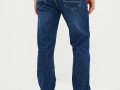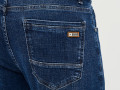 Синие джинсы прямого кроя из плотного потертого денима (13,2 oz) с добавлением эластана и фирменной нашивкой на монетном кармане. Пятикарманная модель на рост 182-188 см с рельефами на карманах сзади, а также пришивным фирменным шевроном. На талии есть шлёвки для ремня и патч из искусственной кожи на поясе "Mossmore". Застёжка на молнию и болт-пуговицу. Размер на модели 32, рост 187 см.