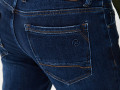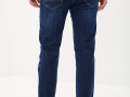 Синие джинсы прямого кроя из плотного денима (13,2 oz) с небольшими потертостями, а также принтом в виде буквы М на кармане сзади. Пятикарманная модель с контрастными строчками и нашивкой "Mossmore" на монетном кармане на рост 176-182 см . На талии есть шлёвки для ремня, патч из экокожи на поясе и металлические заклёпки на карманах спереди. Застёжка на молнию и болт-пуговицу. Размер на модели 33, рост 189 см.