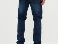 Джинсы широкого кроя брючин из плотного денима (13.2 oz) с потертостями и декоративными строчками на карманах сзади. Модель с пятью карманами с ручной обработкой потертостей краев, а также низа брючин на рост 182-188 см. На талии есть шлёвки для ремня и патч из рыжей экокожи "Mossmore". Застёжка на молнию и болт-пуговицу. Размер на модели 32, рост 187 см.