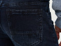 Джинсы прямого кроя из хлопкового плотного денима (13,2 oz) с добавлением эластана и фирменной нашивкой на монетном кармане. Модель на рост 182-188 см с ручной обработкой потертостей краев карманов и низа брючин, а также рельефами на карманах сзади. На талии есть шлёвки для ремня и фирменный патч из рыжей экокожи "Mossmore". Застёжка на молнию и болт-пуговицу. Размер на модели 32, рост 187 см.