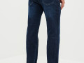 Джинсы широкого кроя брючин из плотного денима (13.2 oz) цвета индиго с добавлением эластана и декорированными карманами сзади. Лаконичная модель с пятью карманами ручной обработкой потертостей краев, а также низа брючин на рост 176-182 см. На талии есть шлёвки для ремня и патч из рыжей экокожи. Застёжка на молнию и болт-пуговицу. Размер на модели 32, рост 187 см.