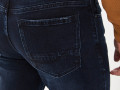 Прямые джинсы из хлопкового плотного денима (13,2 oz) цвета индиго с ручной обработкой потертостей краев карманов и низа брючин. Пятикарманная модель на рост 182-188 см с декорированными карманами сзади. На талии есть шлёвки для ремня и фирменный патч из экокожи "Mossmore". Застёжка на молнию и болт-пуговицу. Размер на модели 33, рост 189 см.