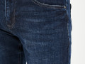Прямые джинсы свободного кроя брючин из хлопкового плотного денима (13,2 oz) с ручной обработкой потертостей краев карманов, а также низа брючин. Модель на рост 176-182 см с небольшими потертостями денима и декорированными карманами сзади. На талии есть шлёвки для ремня и фирменный патч из экокожи "Mossmore". Застёжка на молнию и болт-пуговицу. Размер на модели 33, рост 189 см.