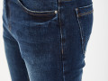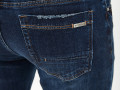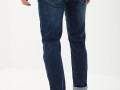 Темные джинсы прямого силуэта брючин из плотного денима (13.2 oz) с небольшими потертостями и металлическим лейблом на кармане сзади. Пятикарманная модель на рост 182-188 см с ручной обработкой потертостей краев карманов и низа брючин, а также контрастными строчками. На талии есть шлёвки для ремня и патч из темной экокожи. Застёжка на молнию и болт-пуговицу. Размер на модели 33, рост 189 см.