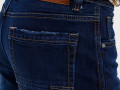 Тёмно-синие джинсы прямого кроя из плотного денима (13.2 oz) с добавлением эластана и контрастными строчками по контуру. Пятикарманная модель на рост 182-188 см с пришивным шевроном логотипа "Mossmore" на монетном кармане и ручной обработкой потертостей краев, а также низа брючин. На талии есть шлёвки для ремня и патч из рыжей экокожи. Застёжка на молнию и болт-пуговицу. Размер на модели 32, рост 189 см.