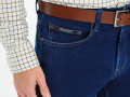 Классические брюки из джинсовой ткани полиринг стрейч. Особенность ткани в том, что в составе используется шелковая нить, что создает невероятную мягкость и нежность. А в сочетании с удобными лекалами, джинсы хорошо принимают любую форму тела и скрывают недостатки. Плюс ко всему держат форму колен и не вытягиваются карманы.Уникальная индонезийская технология обработки ткани и японская фурнитура от известной фирмы YKK.Данная модель выполнена в классическом синим джинсовом цвете.А швы обработанны 3-х слойной нитью - темно желтого цвета.