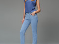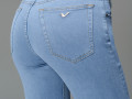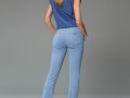Классические брюки из джинсовой ткани полиринг, прямого кроя с высокой посадкой. В составе ткани присутствует район, это вискозная шёлковая нить, она придает ткани мягкость и очень приятная на ощупь. А также в состав входит 4% спандекса, что дает свободу и комфорт в движении. Это пяти карманная модель рассчитана на рост 175. На талии шлёвки для ремня, фирменная фурнитура c логотипом Velocity, застёжка на молнию YKK, болт-пуговицу и металлическим значком на заднем кармане. Плотность ткани 11 унций. Джинсы хорошо вписываются как в элегантный образ на каблуках, так и в спортивный с кроссовками. Джинсы прекрасно подходят для любого типа фигуры. Эта модель придает образу большую женственность. Прекрасно подходит для сезона весна-лето.