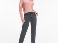 Женские джинсы Мом из ткани полиринг. Эта модель свободного кроя с высокой талией. Застежка на молнии, брендовая фурнитура, пуговица на поясе и шлевки для ремня. Ткань очень приятная на ощупь, так как в составе содержится район, это шелковое волокно.Так же в составе есть спандекс, он способствует сохранению формы изделия на протяжении всего срока носки.