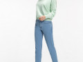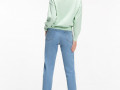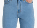 Женские джинсы Мом из ткани полиринг. Эта модель свободного кроя с высокой талией. Застежка на молнии, брендовая фурнитура, пуговица на поясе и шлевки для ремня. Ткань очень приятная на ощупь, так как в составе содержится район, это шелковое волокно.Так же в составе есть спандекс, он способствует сохранению формы изделия на протяжении всего срока носки.