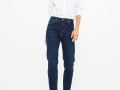 Женские джинсы кроя mom. Модель из хлопка с небольшим добавлением эластана тёмно- синего цвета. Лаконичное исполнение задних, передних и монетного карманов. Благодаря высокой джинсы прекрасно подчеркнут вашу талию. Базовая и универсальная модель, которая смотрится стильно как с подворотами, так и без.