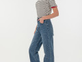 Модные свободные джинсы-трубы синего цвета кроя Comfort с вареным эффектом, выполненные из 100% хлопка. Плотность 10 oz. Застежка: молния, пуговица. Размер соответствует. Размер на модели: 26. Параметры модели: 85-61-90. Рост модели на фото: 178. Посадка: высокая. Страна производства: Китай.