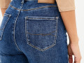 Джинсы прямого кроя плюс сайз из плотного хлопкового денима (13 oz) с завышенной талией и небольшими потертостями. Модель из ткани с добавлением эластана на рост 176-182 см с пятью карманами и фигурными контрастными строчками на задних карманах. На талии есть шлёвки для ремня, а также фирменный патч из экокожи "Mossmore". Застёжка на молнию и болт-пуговицу. Размер на модели 32, рост 176 см.