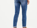 Джинсы бойфренды с размерным рядом плюс сайз из плотного денима (13 oz) с потертостями и вышивкой лейбла на монетном кармане. Пятикарманная модель со средней посадкой и декором на карманах сзади на рост 164-170см. Джинсы с подворотами снизу и контрастной отделкой бокового шва. Застёжка на молнию и болт-пуговицу. Размер на модели 28, рост 177 см.