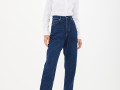 Женские джинсы свободного кроя балон. Выполнены из 100% хлопка. Классический синий деним. Высокая посадка подчеркнёт ваш рост и талию. Благодаря свободным брючинам джинсы смотрятся очень легко. Джинсы декорированы светлой строчкой и металлическими бронзовыми клёпками на карманах. Их можно носить как с подворотами, так и без. Универсальная и практичная модель в сочетании с высокими ботинками на осень.