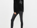 Джинсы узкого облегающего кроя из черного плотного денима (13 oz) с эластаном и высокой посадкой. Джинсы скинни с пятью карманами и черной строчкой по контуру на рост 158-164 см. На талии есть шлёвки для ремня, а также фирменный патч из темной экокожи "Mossmore". Застёжка на молнию и болт-пуговицу. Размер на модели 27, рост 179 см.