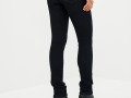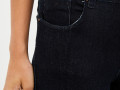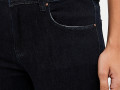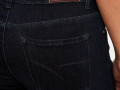 Зауженные джинсы из тёмно-синего денима с добавлением эластана, с плотностью 12,2 oz(средней) на ростовку 32. Пятикарманная модель с рыжей строчкой на фигурных арках задних карманах и с V-образной кокеткой сзади. На талии есть шлёвки для ремня. патч из натуральной кожи на поясе с фирменным логотипом "Mossmore" и металлические заклёпки спереди. Застёжка на молнию и болт-пуговицу. Рост модели 174 см, размер 30.