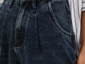 Джинсы кроя балон сине-чёрного цвета. Выполнены из 100% хлопка. Данную модель можно носить как с подворотами, так и без. Стильная и яркая модель. Высокая посадка и интересный крой подчёркивают талию. Удобные врезные и накладные задние карманы. Для большей практичности на поясе есть шлёвки для ремня. Они будут прекрасно смотреться с объемными кофтами или свитшотами, а также массивной обувью или кедами.