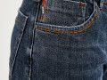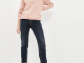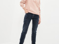 Джинсы бойфренды с небольшой потертостью плотного денима (13 oz) средней посадки с контрастной строчкой по контуру. Модель с подворотами с цветным оверлоком шва снизу, а также пятью карманами с ручной обработкой потертостей краев. Джинсы на рост 164-170 см с декорированными карманами сзади и вышивкой на монетном кармане спереди. На талии есть шлёвки для ремня, а также фирменный патч из экокожи "Mossmore". Застёжка на молнию и болт-пуговицу. Размер на модели 27, рост 177 см.