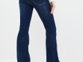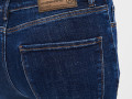 Расклешенные от колена джинсы из плотного темно-синего денима (13 oz) с высокой посадкой и контрастной строчкой по контуру. Пятикарманная модель на рост 172-178 см с небольшой потертостью денима. На талии есть шлёвки для ремня, а также фирменный патч из светлой экокожи "Mossmore". Застёжка на молнию и болт-пуговицу. Размер на модели 27, рост 177 см.